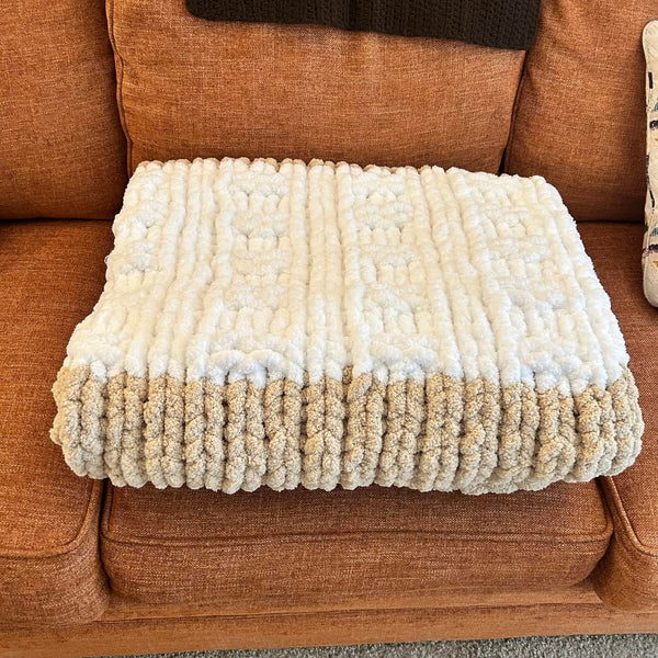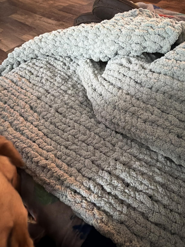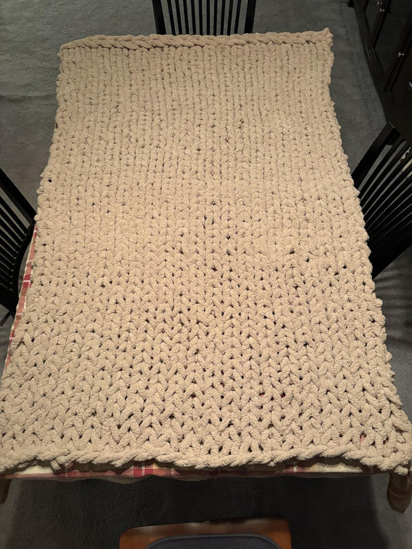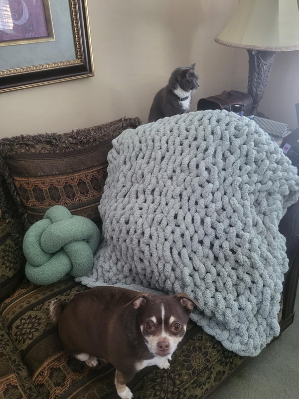 “I was worried it would be complicated but it was actually super easy. The yarn is thick and fluffy and the blanket turned out amazing.”