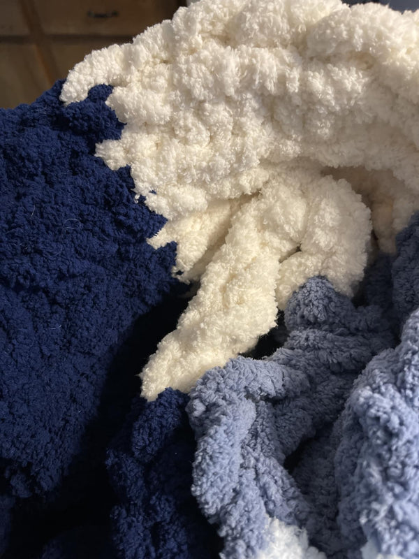 Our yarn is made from ultra-soft chenille fibers that feel plush, fluffy, and cozy. It’s designed to create blankets that are incredibly comfortable and warm.